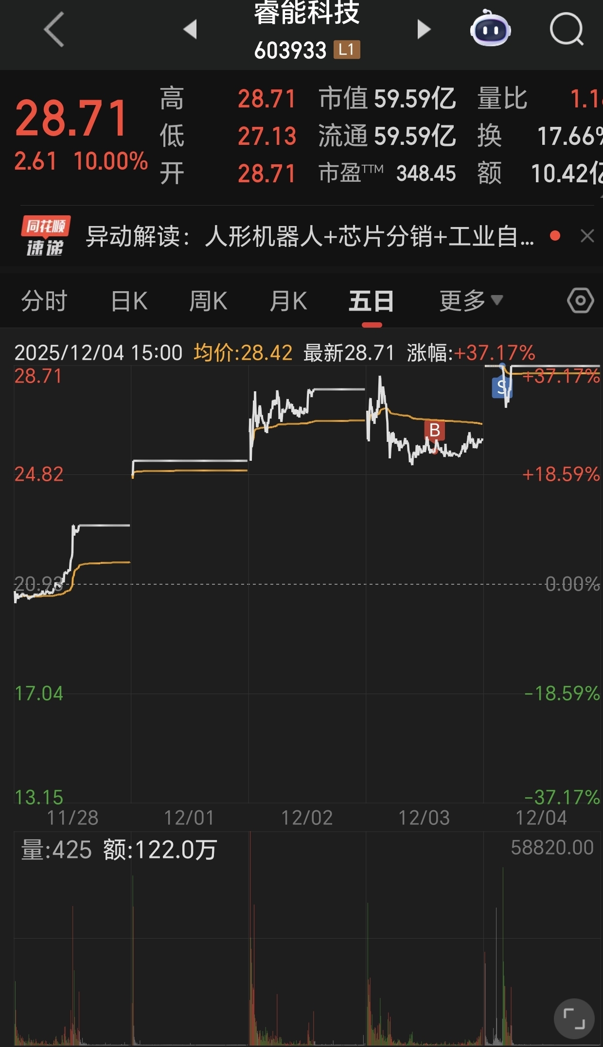 $睿能科技(SH603933)$ 恭喜大家明天继续吃肉
