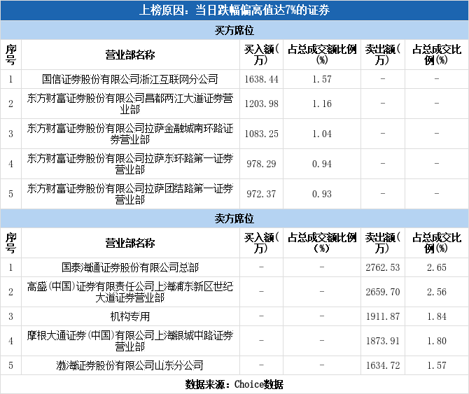 机构现身龙虎榜,睿能科技跌停(12-09)