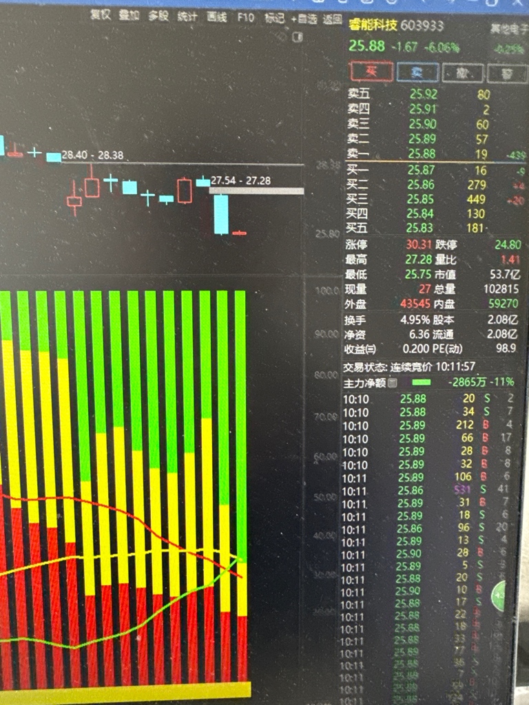 $睿能科技(SH603933)$ 怎么今天散户这么猛?主力出逃,散户疯狂买入?
