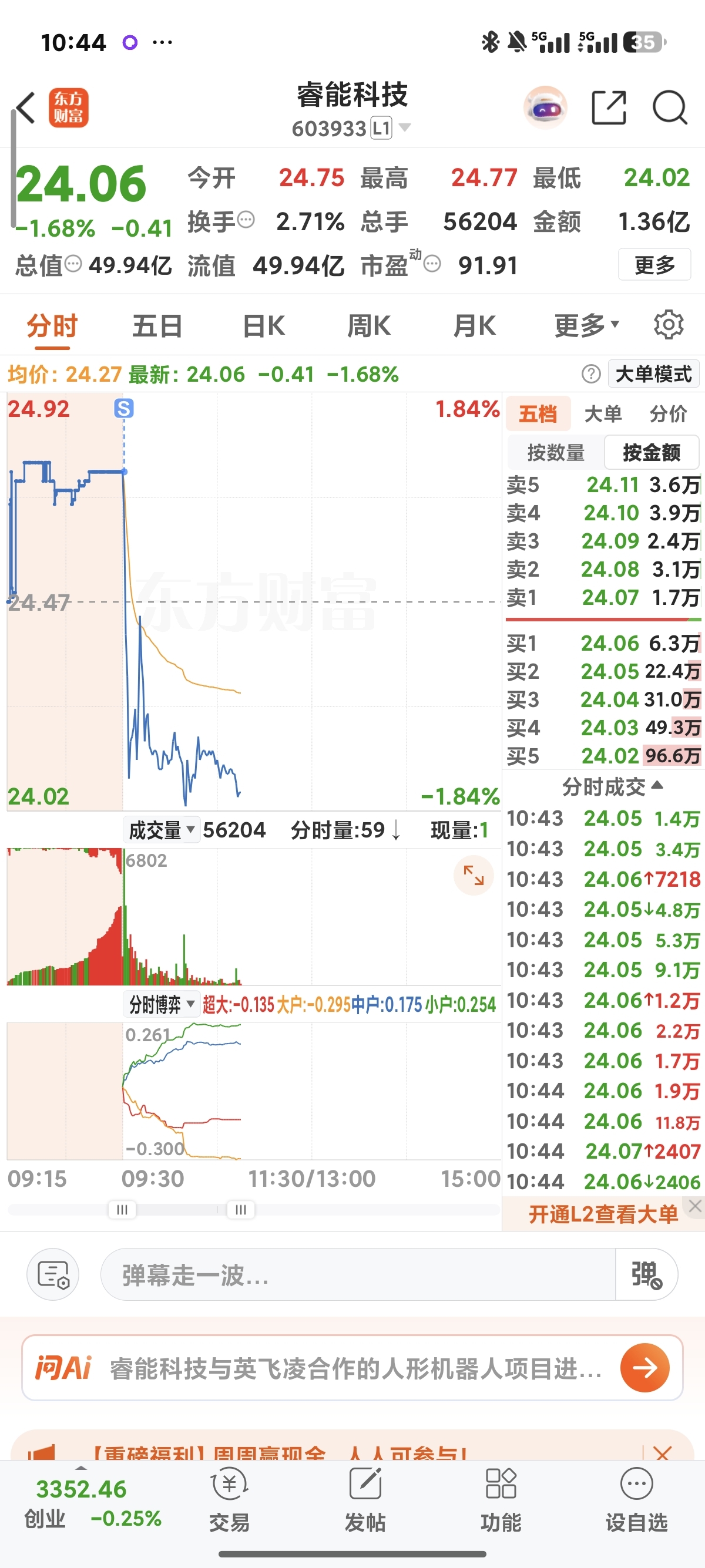 $睿能科技(SH603933)$ 不好意思兄弟们,我砸盘了
