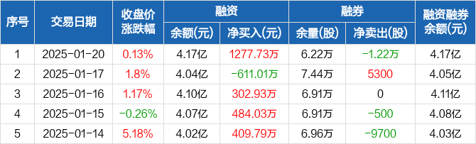 博敏电子:融资净买入1277.73万元,融资余额4.17亿元(01-20)