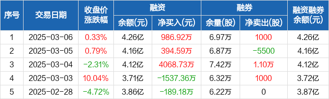 博敏电子:连续3日融资净买入累计5450.24万元(03-06)