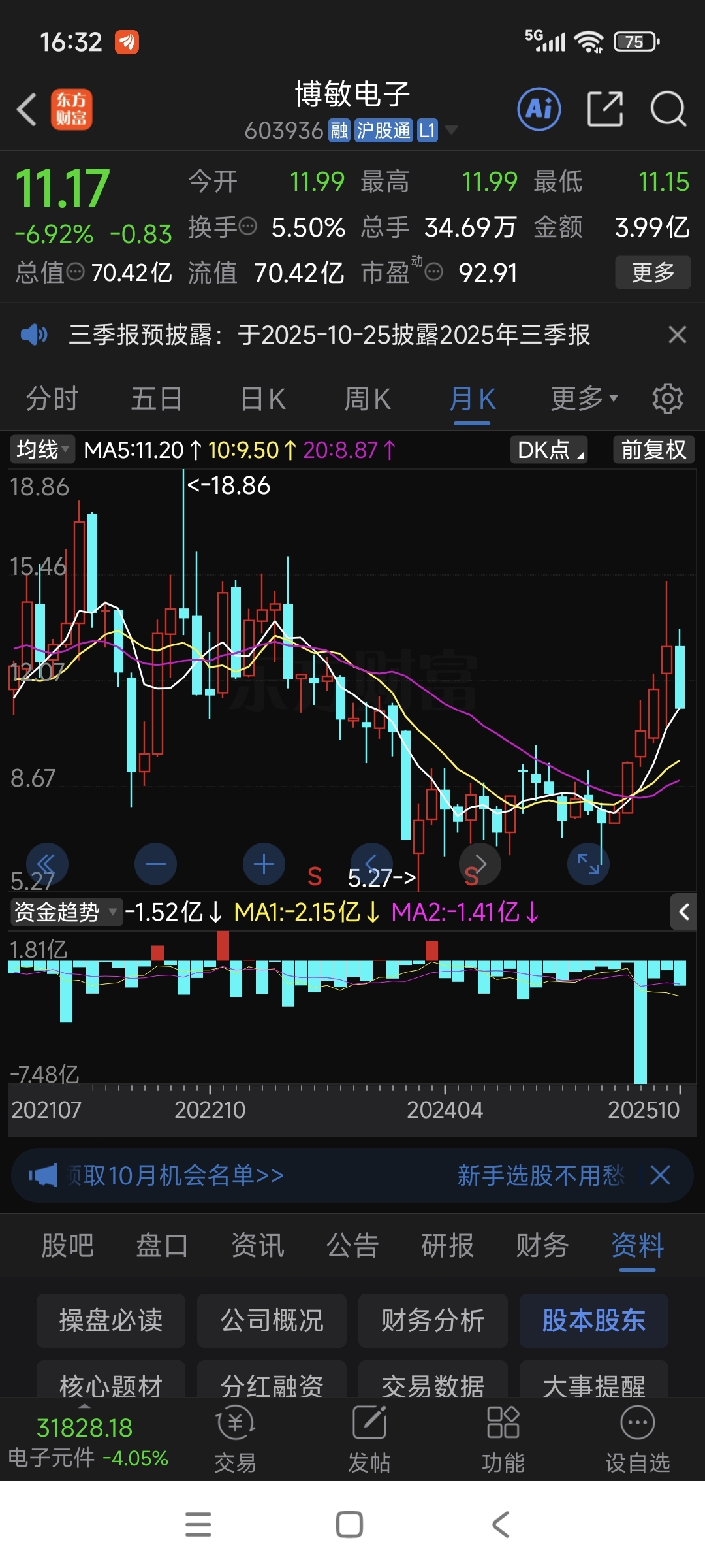$博敏电子(SH603936)$ 打开月线看看,博命你涨过吗?你有脸跌吗?难道真的是地域不行?