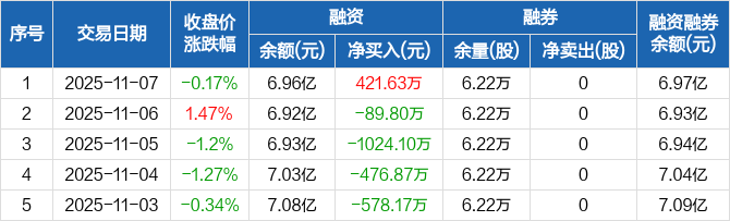 博敏电子:融资净买入421.63万元,融资余额6.96亿元(11-07)