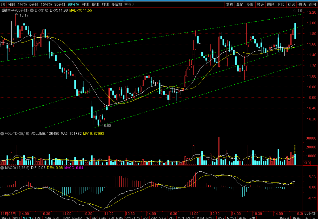 拉尾盘的短线资金高开走了,他们破坏了60分钟的攻击结构,60分钟周期高点在12.11,今天上午要反复震荡旨在巩固11.74的阵地,上文发的60K线图还记得吧?