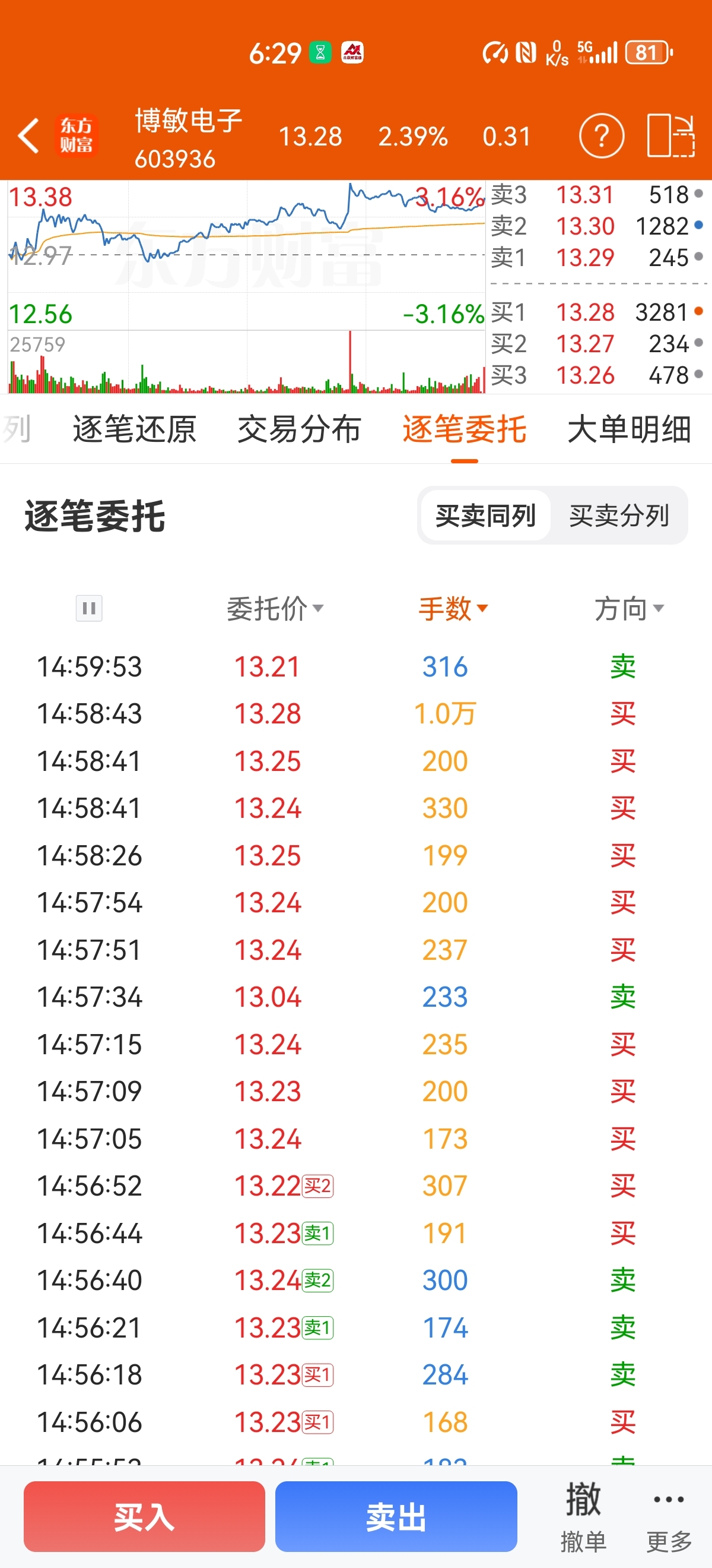 $博敏电子(SH603936)$ 万手哥集合竞价抢筹!啥情况?明天能高开秒板不?