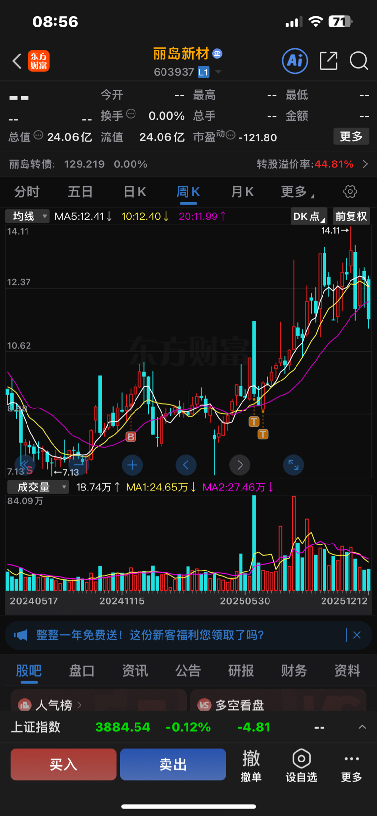 $丽岛新材(SH603937)$ 上周的低点再给,我就进货
