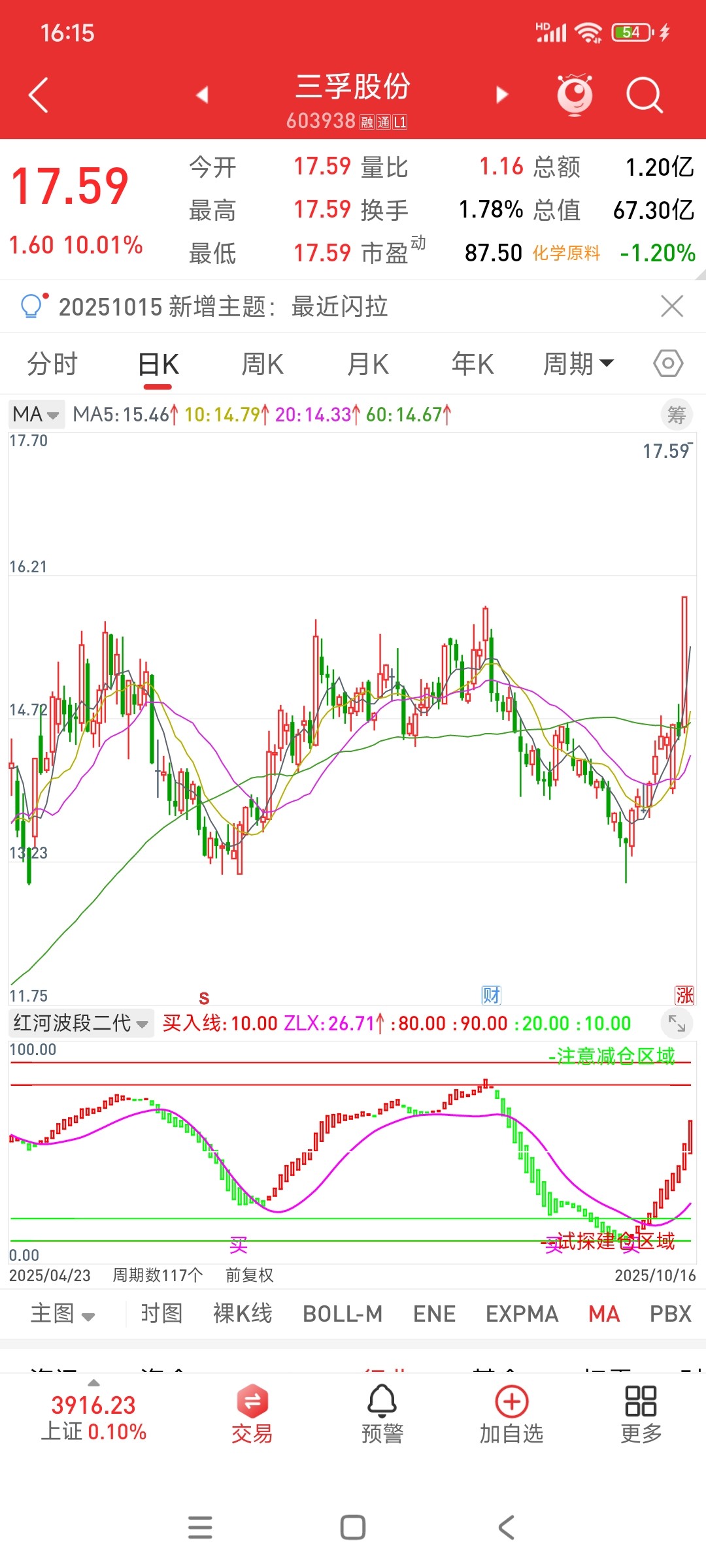 $三孚股份(SH603938)$ 这票上周写过以后就没写了,当时我说的是这票红柱延续,所以继续看涨,这两天加速起来了,不错,红柱不停,上涨不止,红柱拉长,加速不止,继续冲