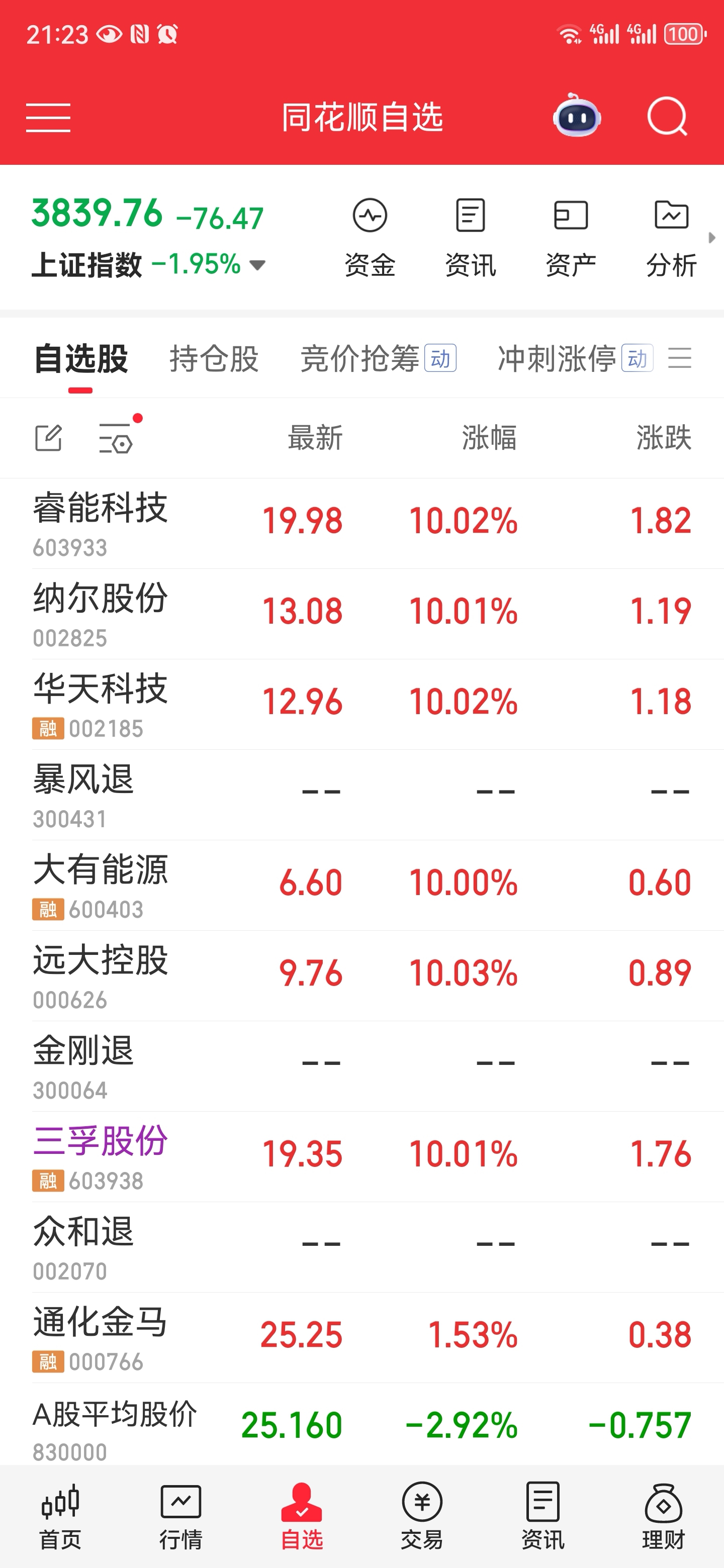 10月17日9点28分;今天避险一下。1.二板睿能科技(pk纳尔股份)盯板止盈。