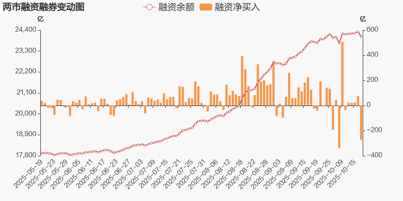 两市融资余额较前一交易日减少271.93亿元,融资余额2.41万亿元(10-17)