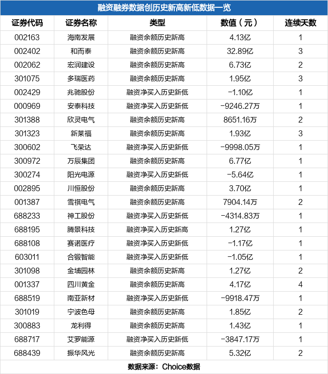 10月17日沪深两市共有106只股票两融数据创历史新高/新低,部分数据如下: