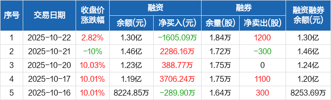 三孚股份:融资净偿还1605.09万元,创近一年新高(10-22)
