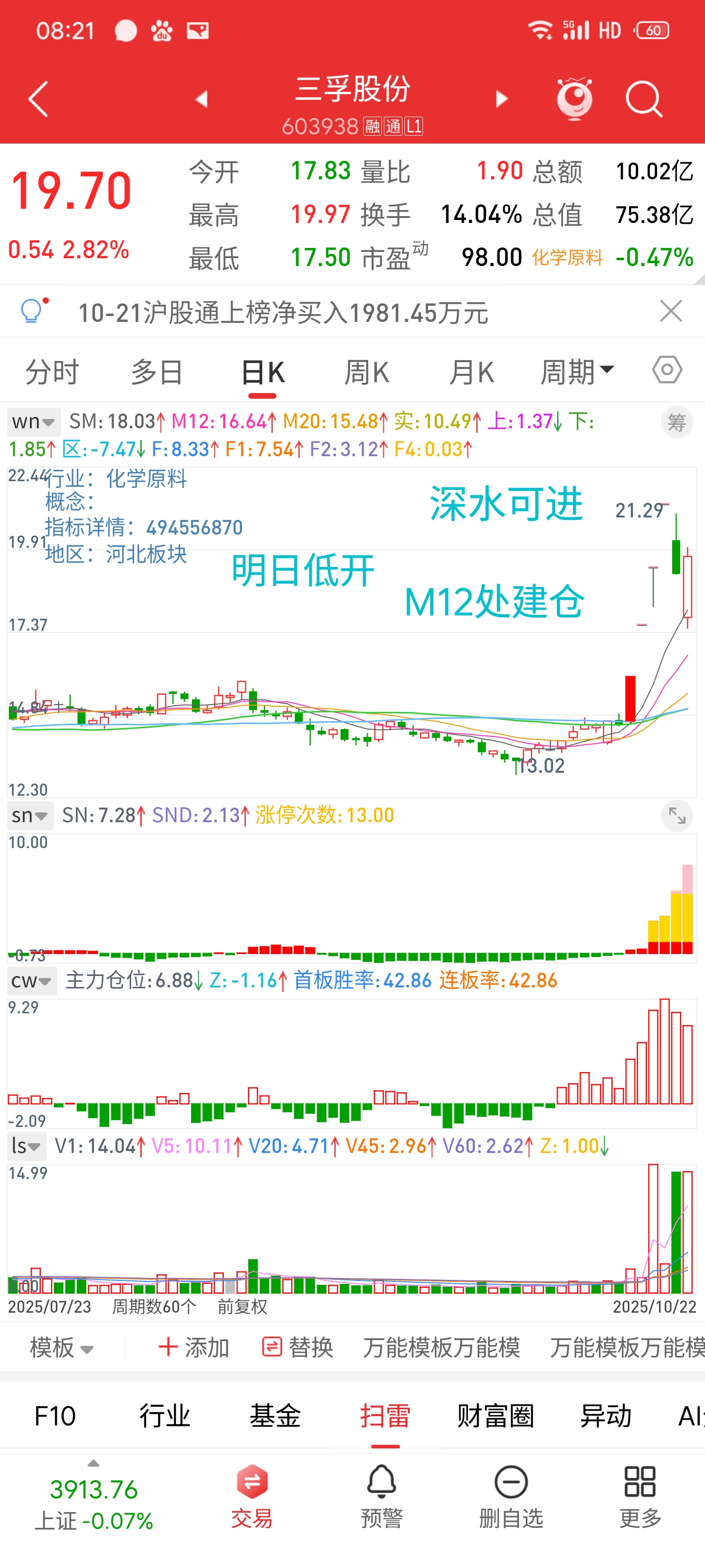 $三孚股份(SH603938)$ 今天给个机会,明天你低开我保证不砸盘。投资有风险,炒股需谨慎。仅供参考,不作为决策依据。
