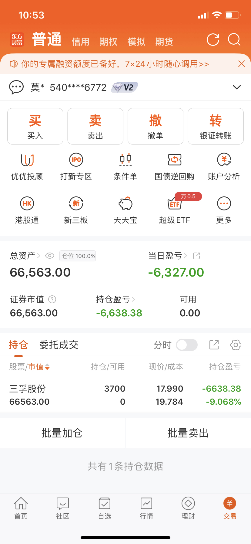 跌停吧,今天不差多亏一点