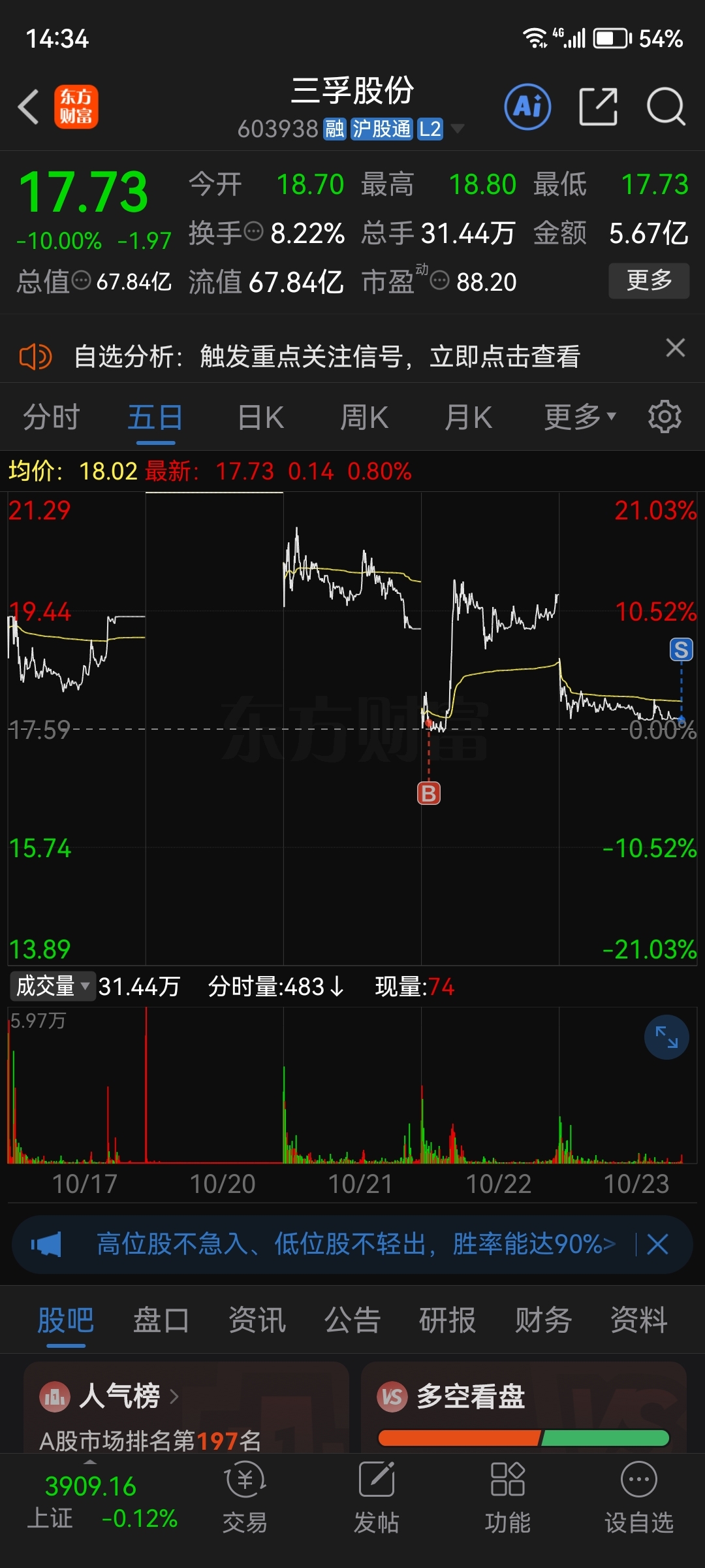 温馨提示: 1.根据《证券法》规定,禁止编造、传播虚假信息或者误导性信息,扰乱证券市场;2.用户在本社区发表的所有资料、言论等仅代表个人观点,与本网站立场无关,不对您构成任何投资建议。用户应基于自己的独立判断,自行决定证券投资并承担相应风险。《东方财富社区管理规定》