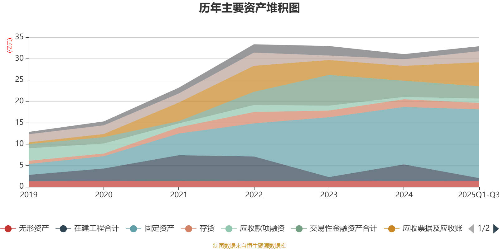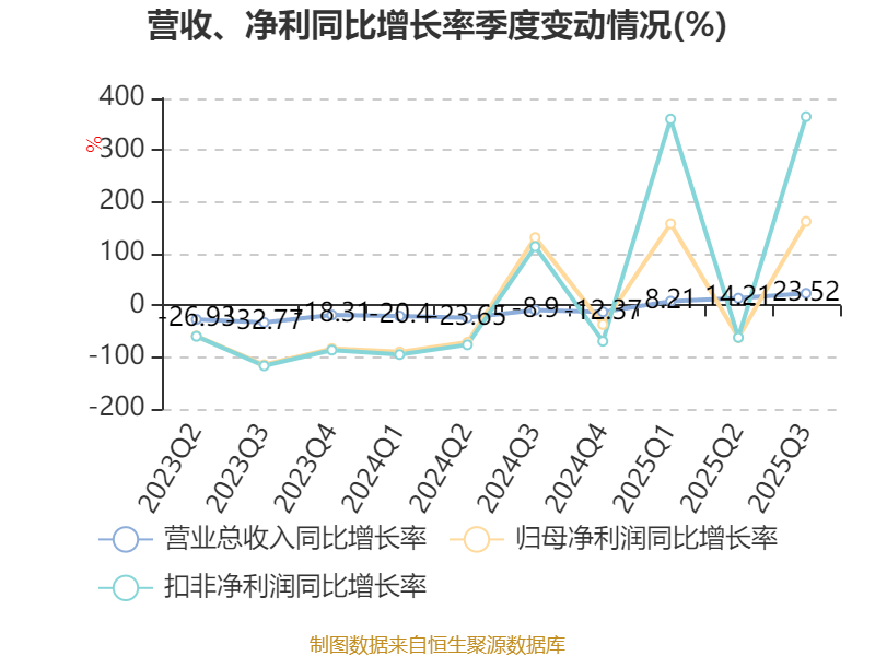 资产重大变化方面,截至2025年三季度末,公司在建工程合计较上年末减少81.79%,占公司总资产比重下降10.49个百分点;应收票据及应收账款较上年末增加61.85%,占公司总资产比重上升5.89个百分点;固定资产较上年末增加19.72%,占公司总资产比重上升5.64个百分点;交易性金融资产合计较上年末减少23.68%,占公司总资产比重下降3.42个百分点。