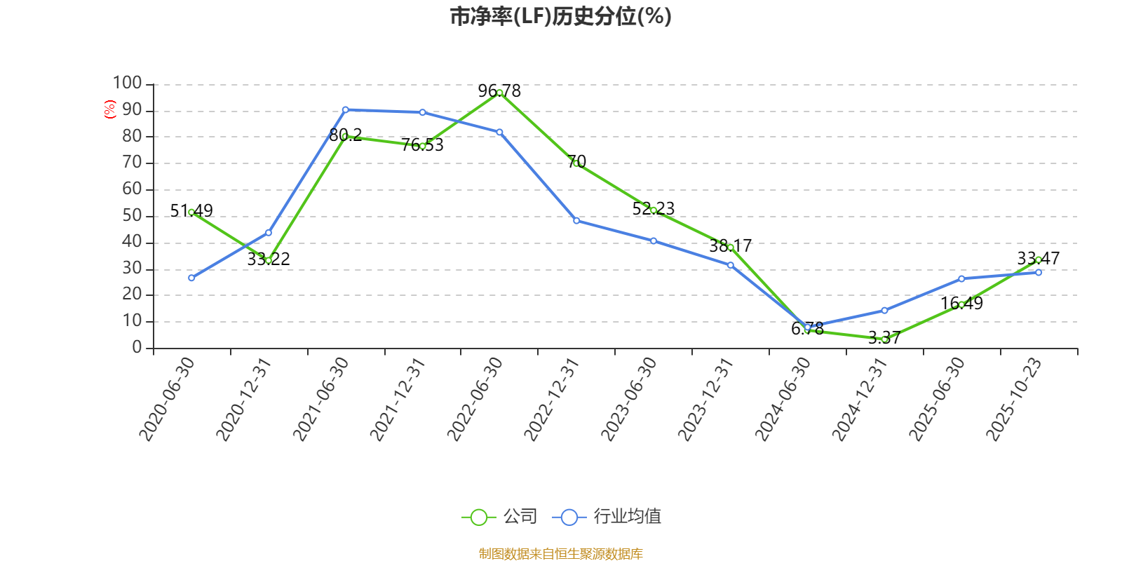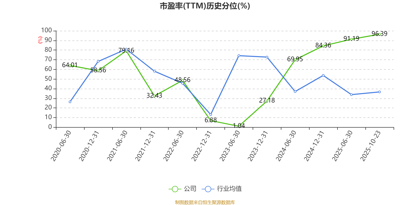 市盈率、市净率为负时,不显示当期分位数,会导致折线图中断。