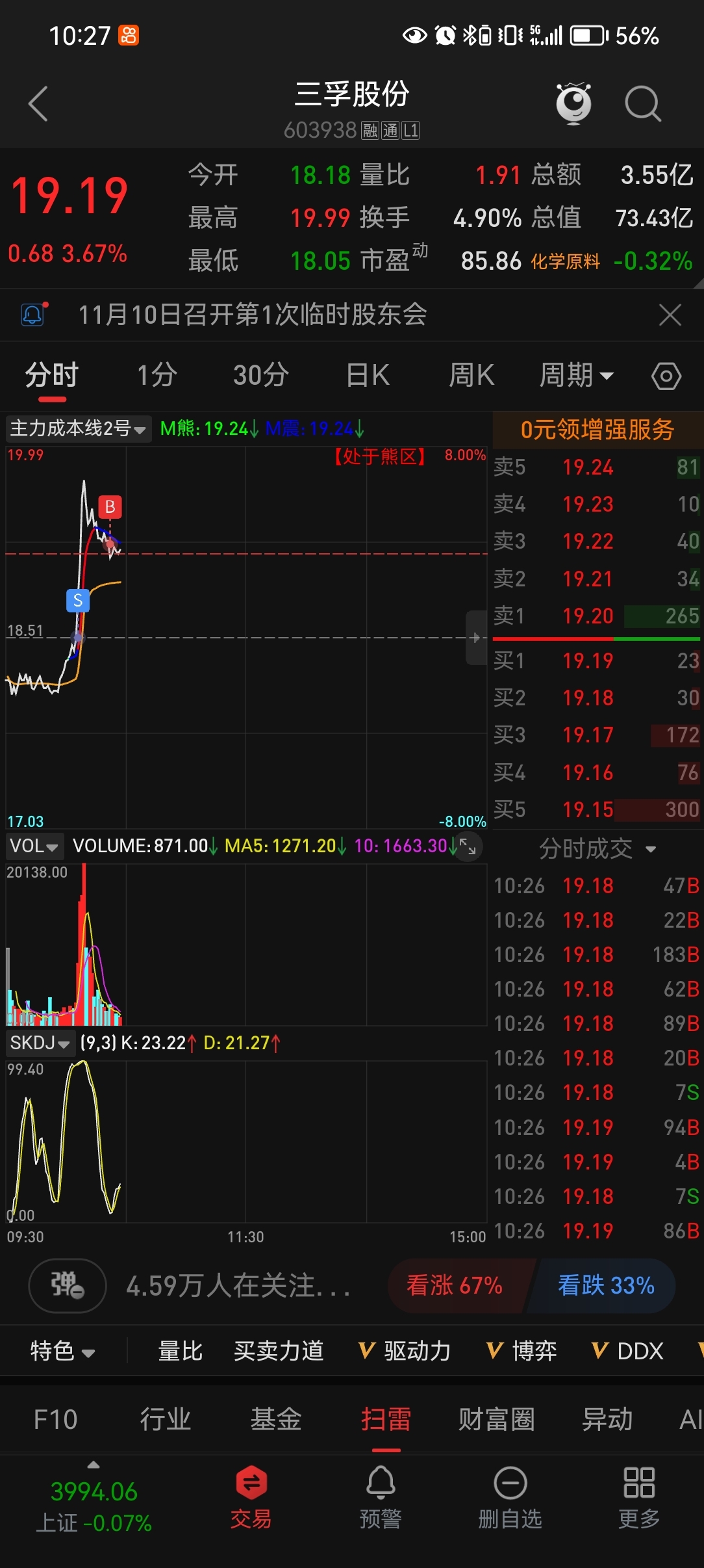 我真服了我自己拉高的时候怕他掉下来赶快卖了,卖完之后直接拉到了19块9毛9。下来