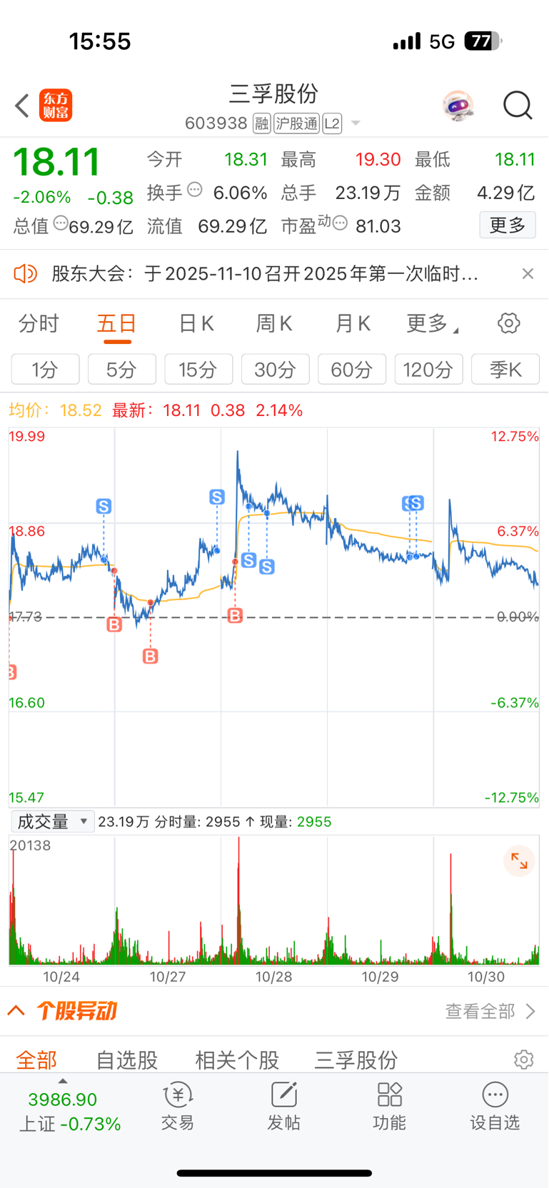 $三孚股份(SH603938)$ #复盘记录# #炒股日记# #收盘点评# 要逮住机会一招致胜才行