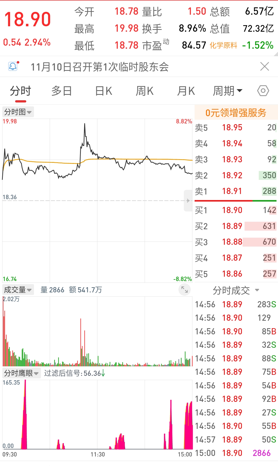 $三孚股份(SH603938)$ 早盘显示强主力吸筹,然后快速拉升9个点,结果冲高回落。于昨日形成双剑霸天地形态,预示着即将变盘。看起来上涨的概率稍微偏大。