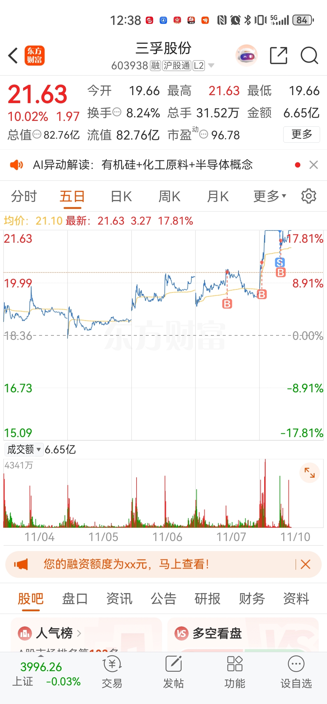 $三孚股份(SH603938)$ 快开板时候卖了,21.32感觉承接很好又接回来了,明天有肉吃吗