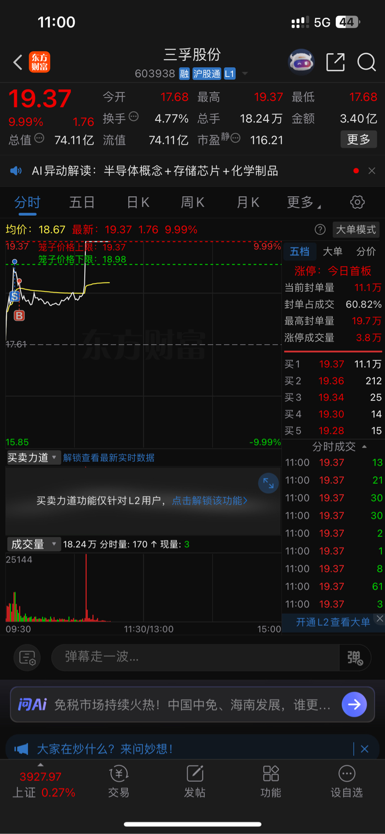 $三孚股份(SH603938)$ 感觉不对 直接买回来了