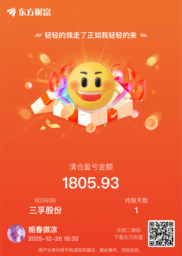 $三孚股份(SH603938)$ 见好就收、苍蝇腿也是肉、合适的价格再入!看好你
