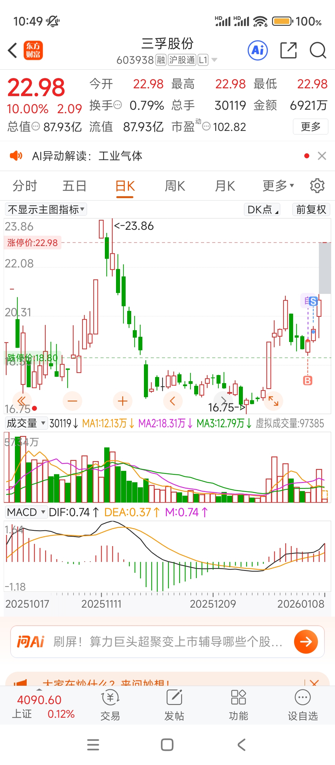 $三孚股份(SH603938)$