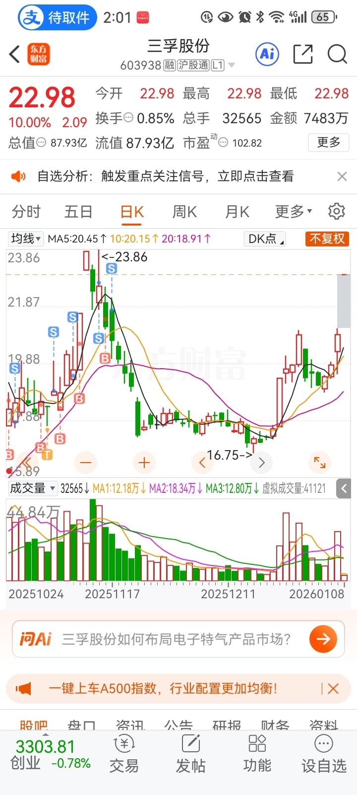 $三孚股份(SH603938)$ 又放走了大牛股~之前22清仓了~调到17没回马枪牛就走了