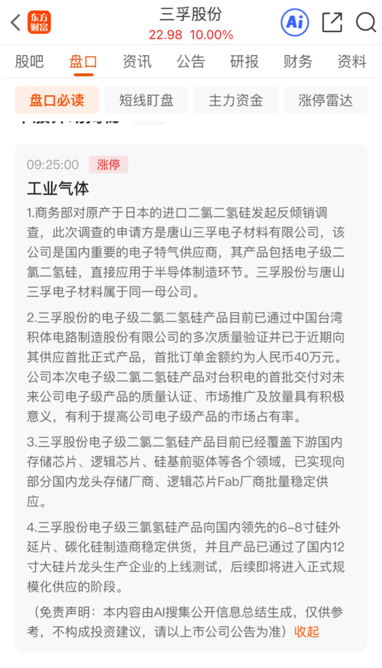 怪不得直接顶一字板,原来反倾销调查就是三孚股份发起来的,对三孚股份以后的经营环境