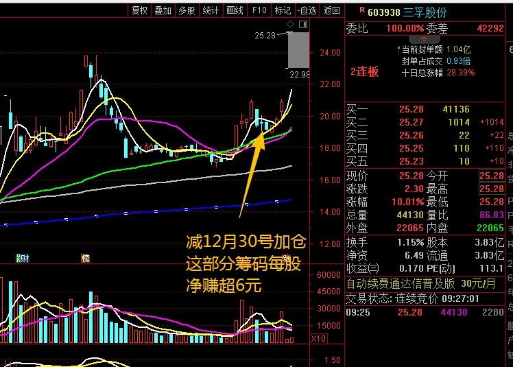 两连板集合竞价就挂单减仓把12月31号尾盘加仓筹码利润先落袋这部分加仓筹码每股净