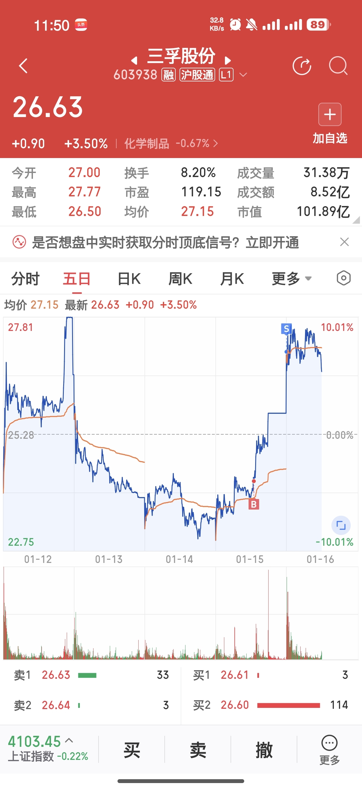 $三孚股份(SH603938)$ 有利润就跑