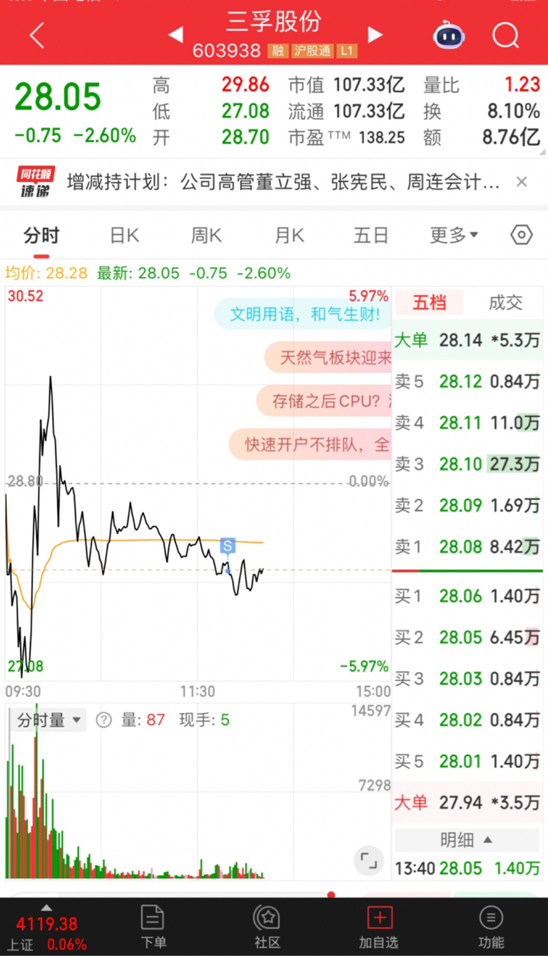 $三孚股份(SH603938)$ 谢谢主力,先走了各位,