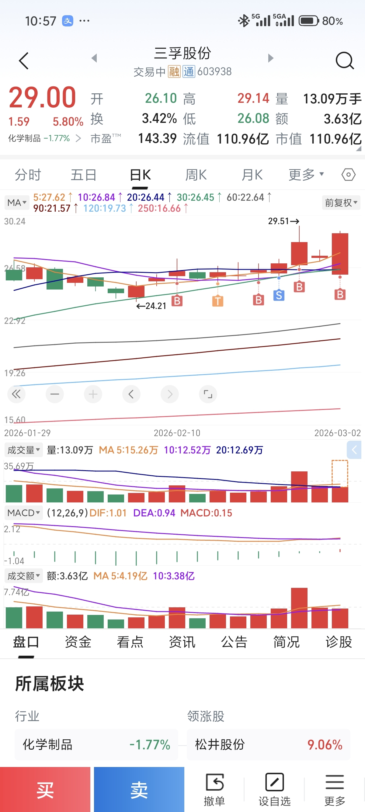 分享了春节后会正式走强。突破30就是新一轮上涨空间的打开。反倾销加涨价叠加预期的
