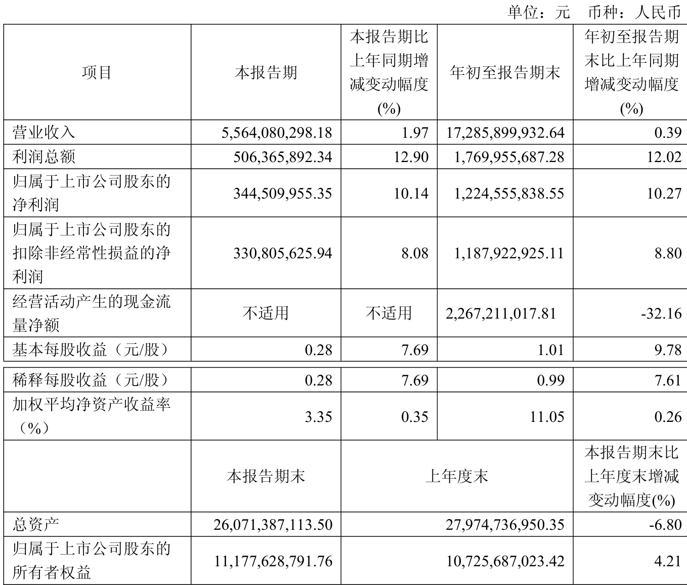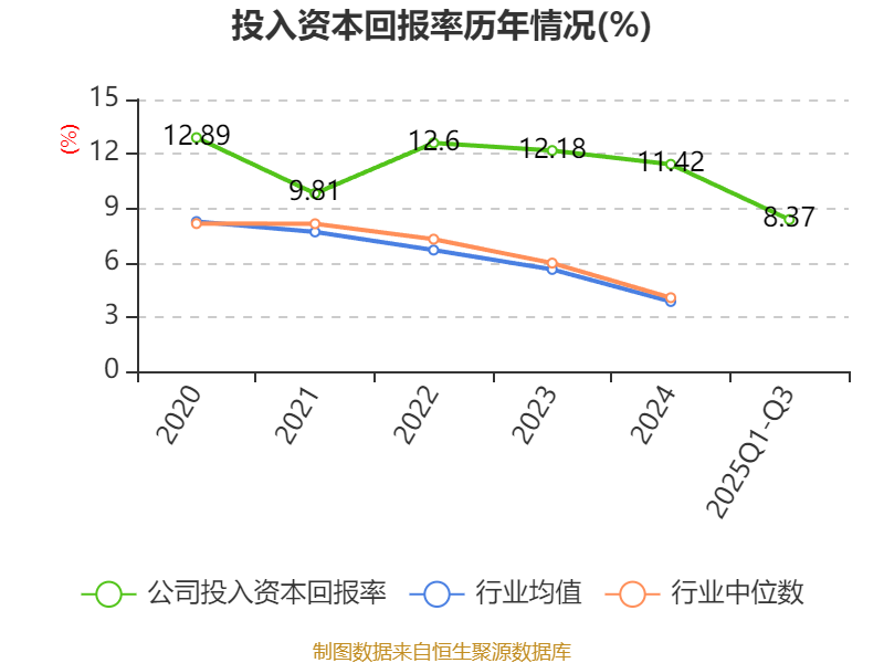 盈利能力方面, 2025年前三季度公司加权平均净资产收益率为11.05%,同比上升0.26个百分点。公司2025年前三季度投入资本回报率为8.37%,较上年同期上升0.05个百分点。