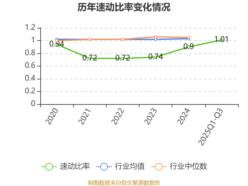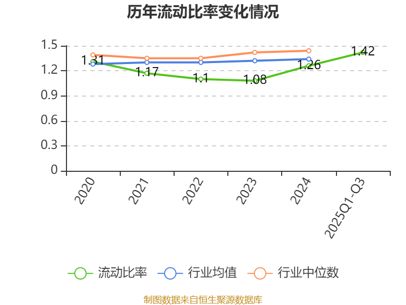 2025年前三季度,公司流动比率为1.42,速动比率为1.01。