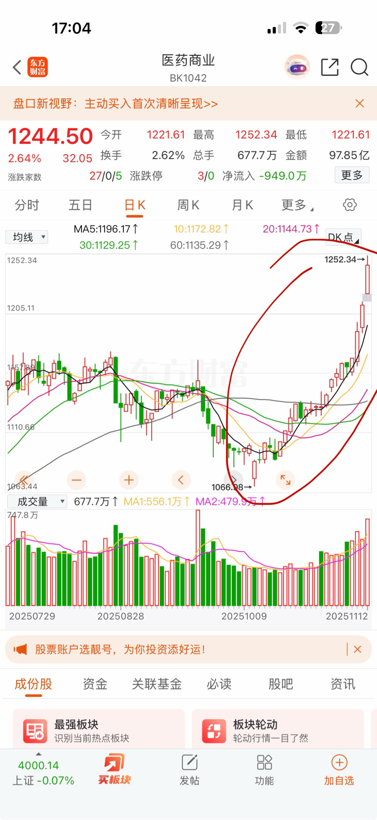 $益丰药房(SH603939)$ 比大盘差,比板块也差,很明显大盘涨不上去了,板块感觉也要回调,不求别的,你也没涨,也没资金进来,所以你别跌,这可以了吧?