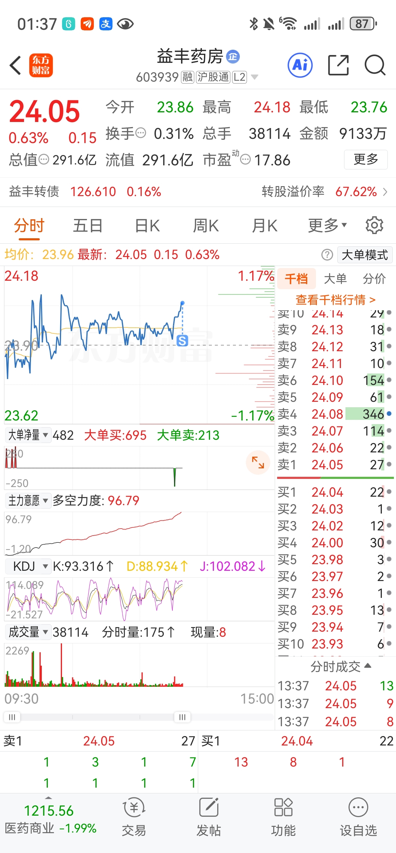 $益丰药房(SH603939)$ 我想卖飞,请成全我