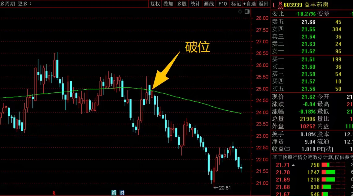 $益丰药房(SH603939)$ 中期趋势走弱了,主要是前段时间跌破大均线后,没有能马上拉起来,形成了破位走势,当时就需要大幅减仓应对,不然一直回落到现在比较被动。整体来看,这里还是处于下降通道中,不建议参与,有仓位的只能是轻仓观察,不要乱加仓。#炒股日记# #强势机会#