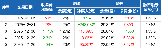 益丰药房:融资净偿还1724元,融资余额1.25亿元(01-05)
