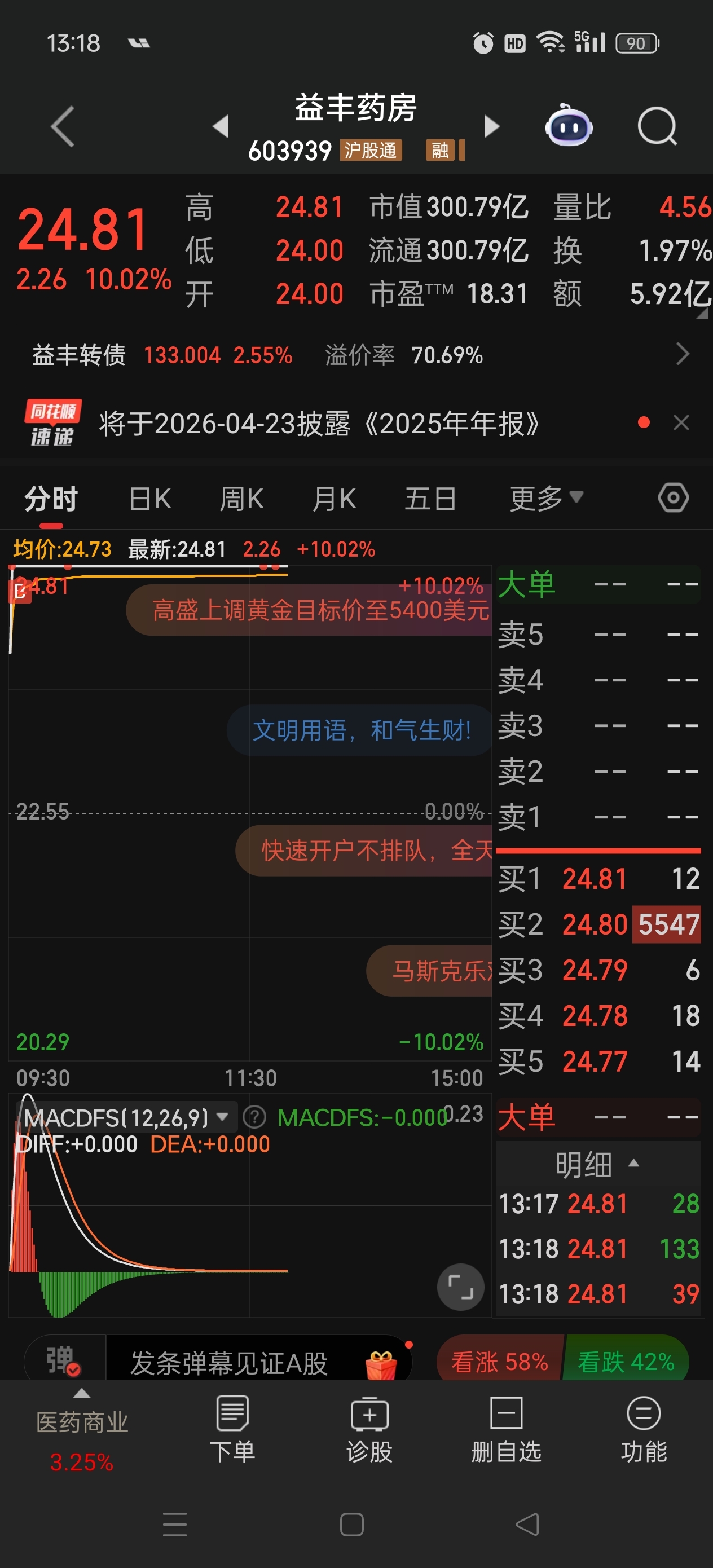 $益丰药房(SH603939)$ 兄弟们,我尽力了,他就是不封板
