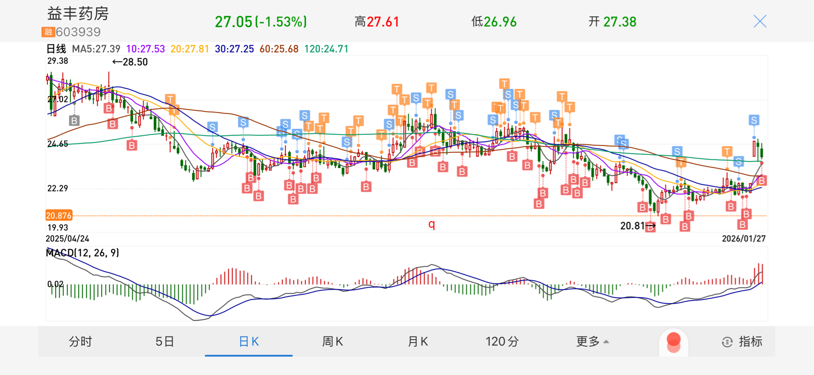 $益丰药房(SH603939)$ 我跟了8个多月,一路做T。死磕到35元