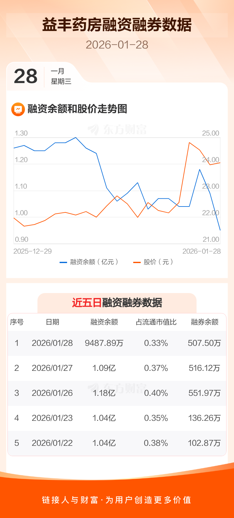 益丰药房:融资净偿还1406.58万元,融资余额9487.89万元