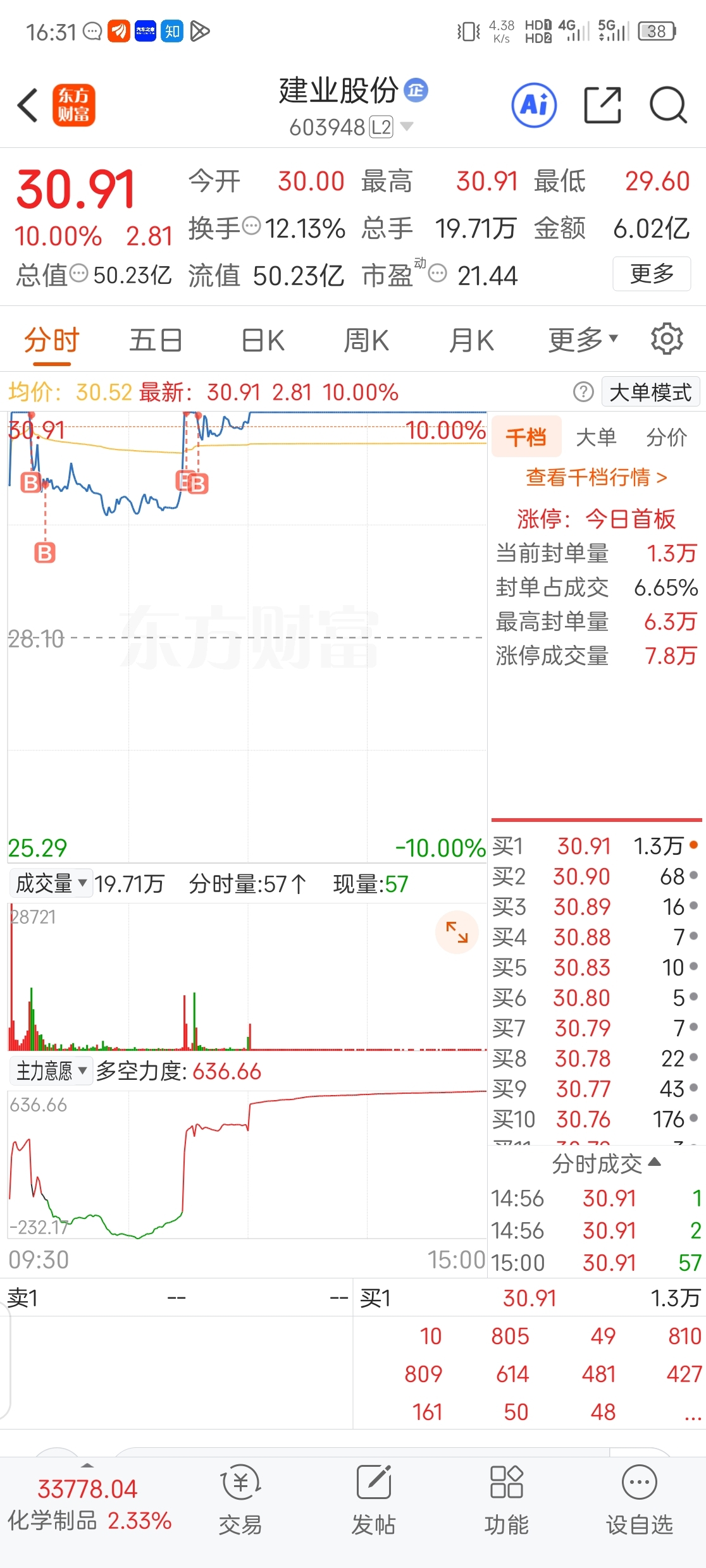 $建业股份(SH603948)$ 算是买的比较坚决的。就是这封板有点差。奔着k线图来的