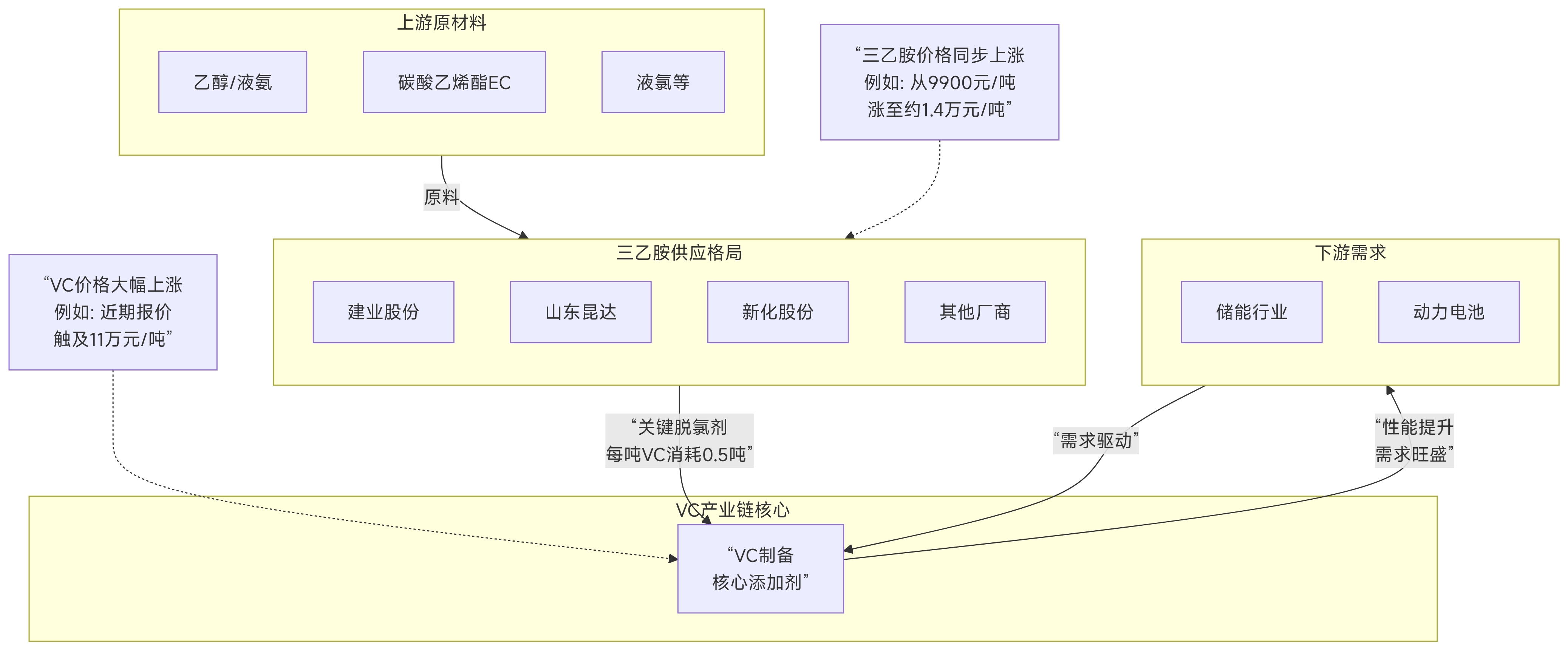 三乙胺在Vc产业链里的地位(见图示)、价格走势。