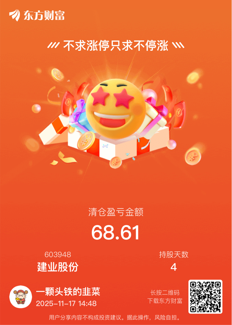 $建业股份(SH603948)$ 再见了,直接删自选,礼拜五的涨停送你了,原以为能陪你一起疯,没想到你自己不给力