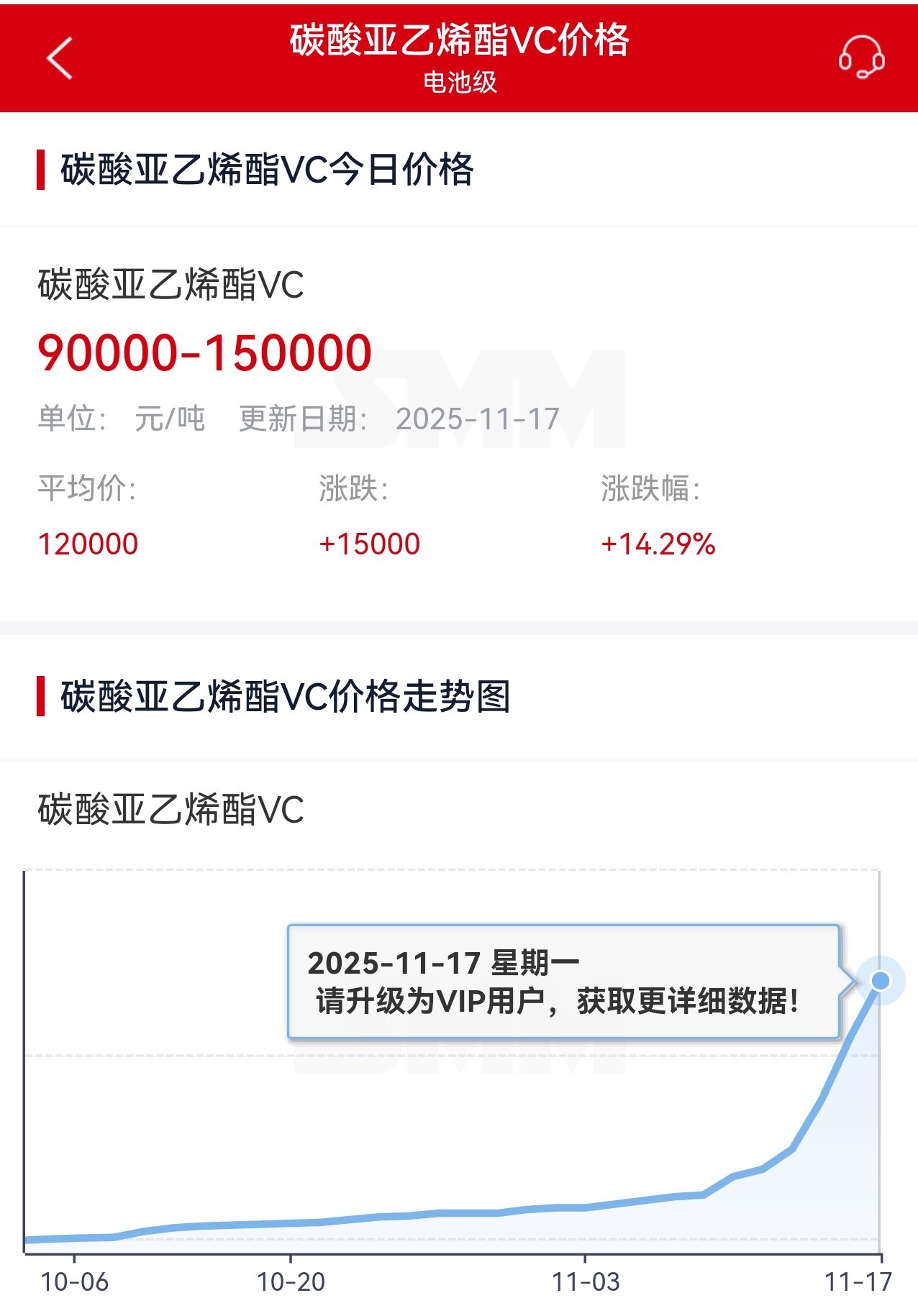今日三乙胺价格强势上行价格从1.4上升至1.63万元/吨。今日VC上涨15%