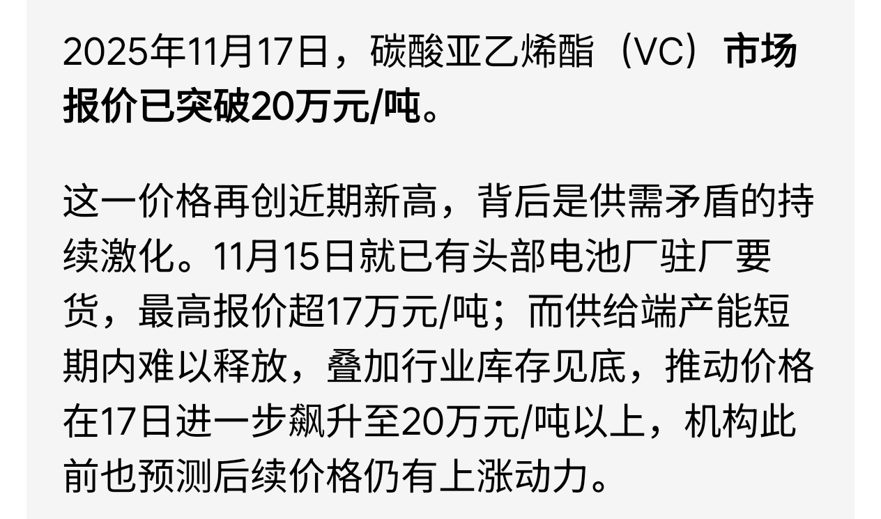 三乙胺是电解液添加剂VC的关键原材料,每市场1吨VC需消耗0.5吨三乙胺。