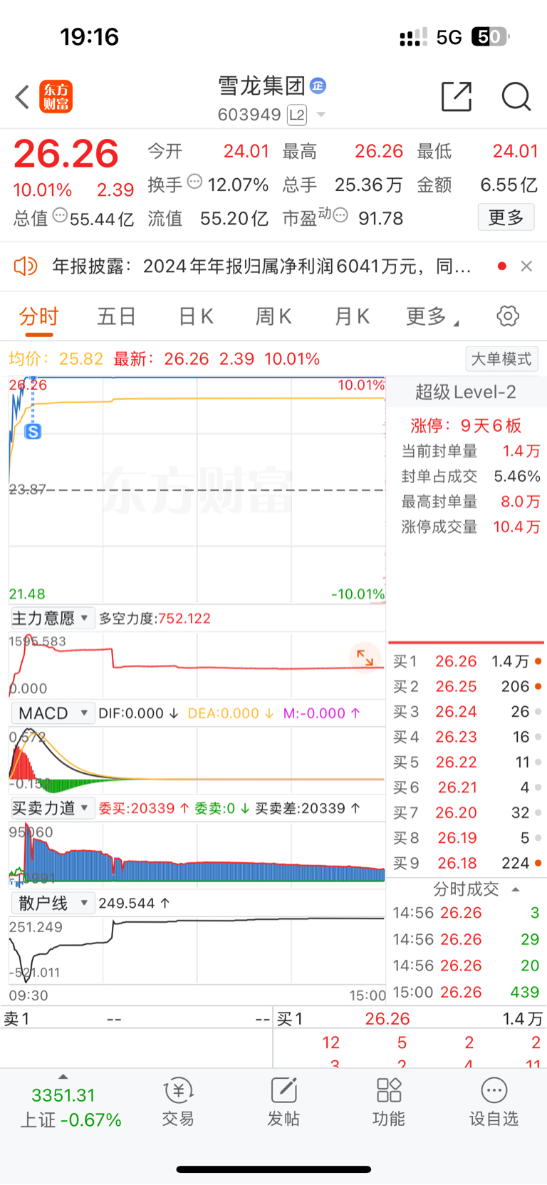 $雪龙集团(SH603949)$ 早上感觉封不住,盘中出了,没想到最能封住,后悔了。