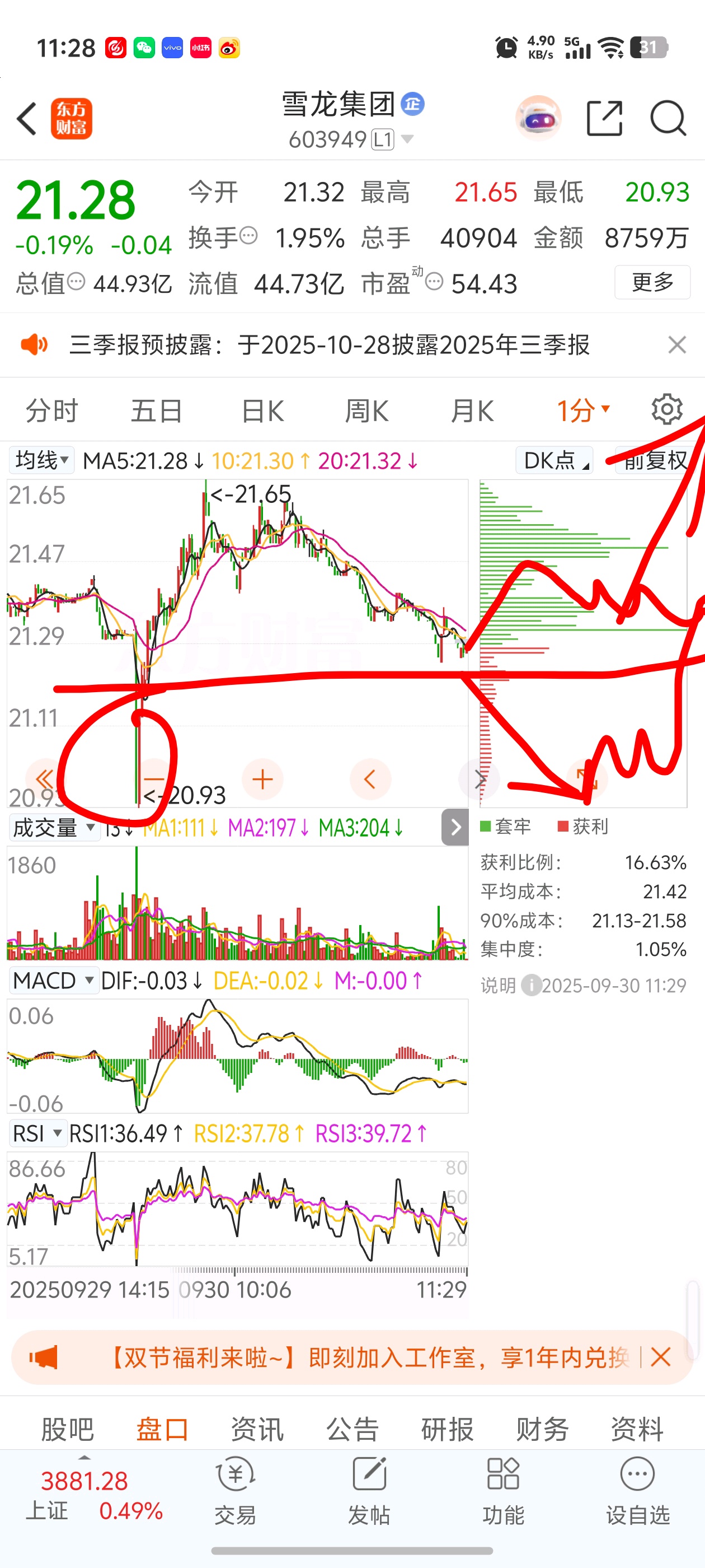 $雪龙集团(SH603949)$ 上有压力,下有支撑,主力想花小钱办大事天天都是自己在里面对倒,要么耐心等着要么早点出局,个人感觉当前危险系数不大,但是熬不住的要走就走快点
